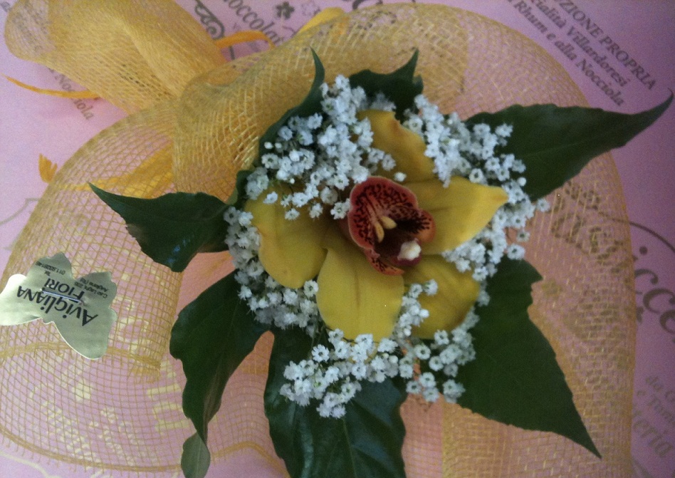 黄色い蘭とかすみ草です